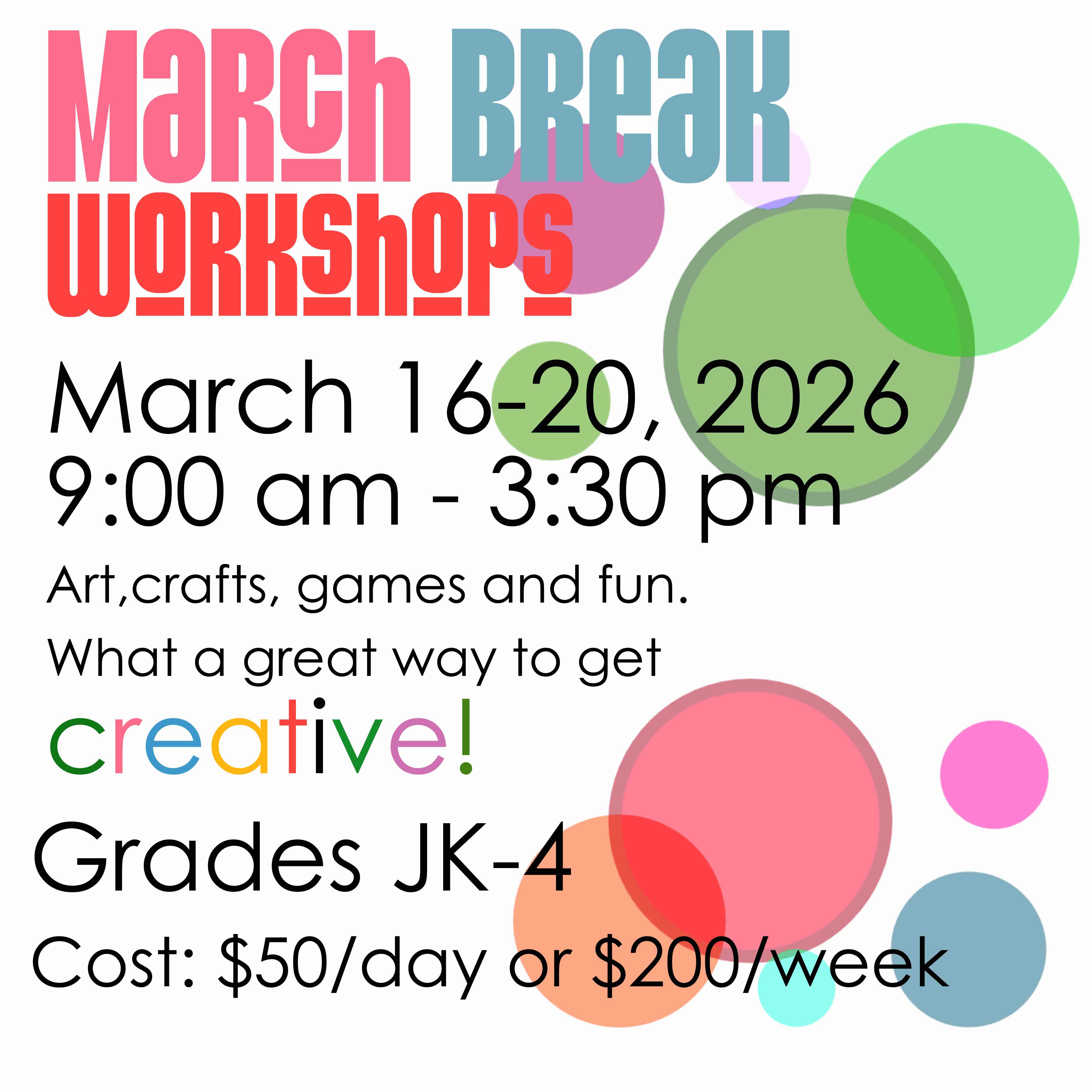March Break Workshopsarch 16-20, 2026