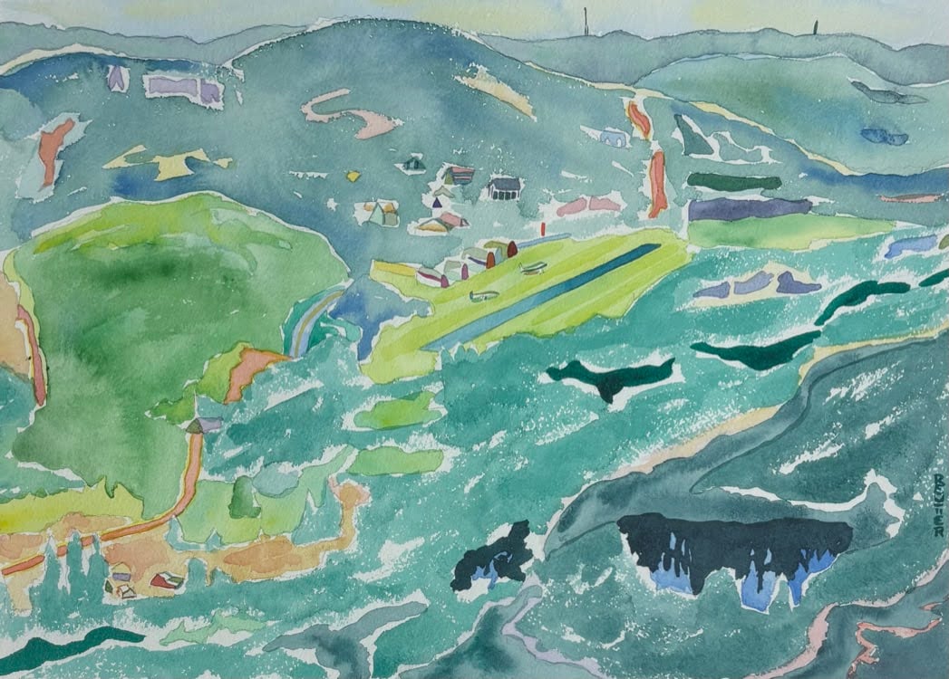 Born in Niagara Falls in 1965, Mark was drawn to the visual arts at a young age and began showing his work in local public galleries while in high school. Since then he has shown primarily in London and surrounding areas. His early subject matter is often autobiographical, documenting his numerous solo and group canoe expeditions throughout Ontario. Many of the watercolours are executed on site when conditions warrant; others are worked later from photographs. He now mainly creates abstract pieces and lives and works in Peterborough Ontario.