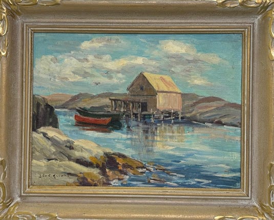 She studied under F. McGillivray Knowles at his Bloor Street Studio and at the Central Technical School, Toronto. She became a teacher at Alma College and in 1931 married F. McGillivray Knowles. She continued to teach at Alma College for thirty years and to remain in the community of St. Thomas. During the summers, she made sketching trips to Colpoy's Bay, Ontario, and exhibited her work there in 1937. She showed her paintings at several venues, including The Robert Simpson Company Ltd. in Toronto (1944), Alma College (1946), and The Little Gallery in Toronto (1951), often focusing on the beauty and charm of the Canadian landscape in all seasons. Her work included rural scenes, seasonal landscapes, marine studies, and flower studies. She also painted in Cape Breton Island and later held exhibitions at her home and local venues in St. Thomas, including a 1967 show marking the anniversary of the Ontario Loan and Debenture Company.