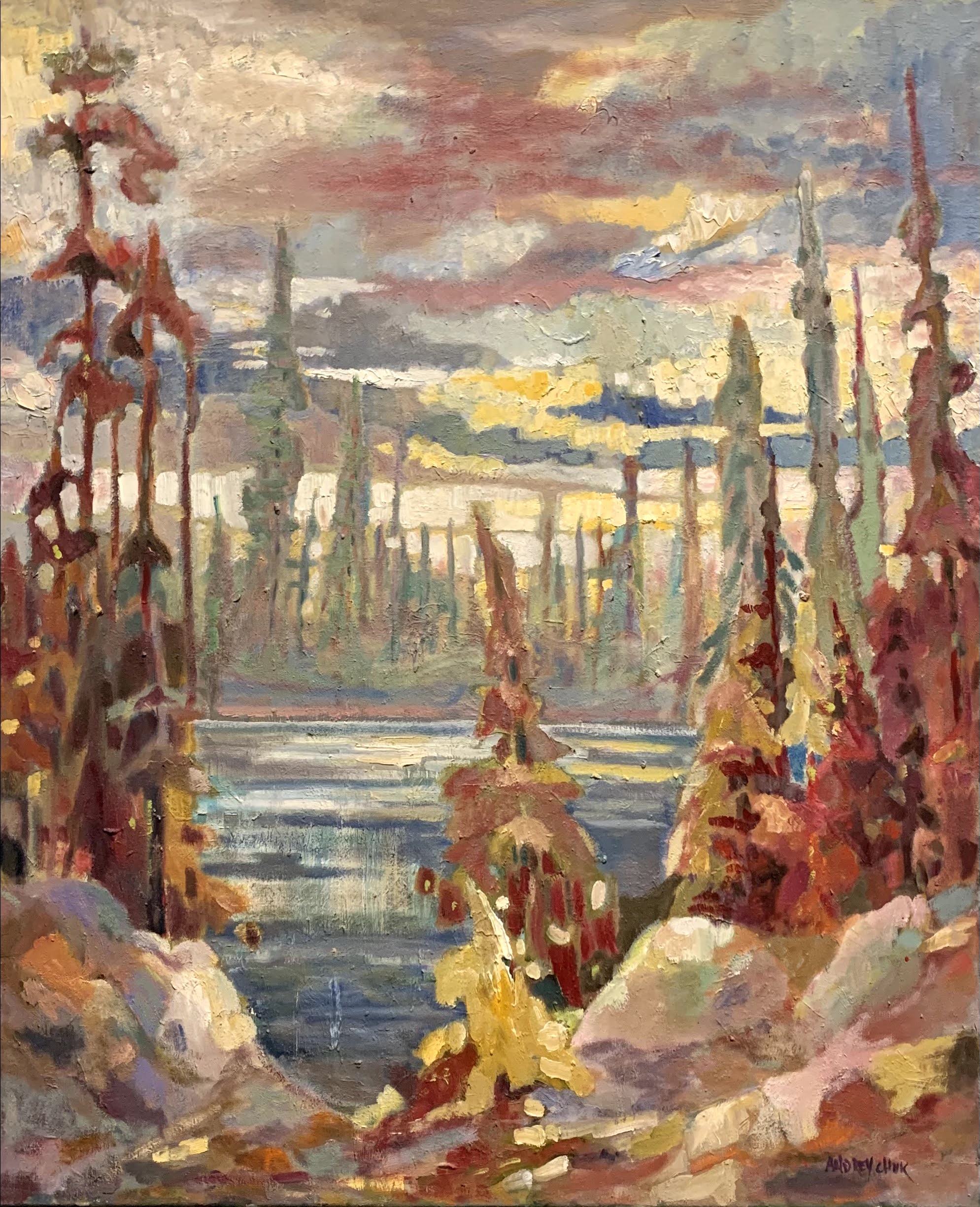 Both recall childhood drives through the countryside with their fathers—quiet excursions through places such as Elora, Paris, Grey County, and Elgin County. These early experiences of roads, fields, waterfalls, and rural vistas continue to shape their work. Through expressive use of colour, gesture, and atmosphere, Harrison and Finkbeiner Thomas explore landscape not as strict record, but as memory, feeling, and imagination. Together, their paintings reflect a shared visual language grounded in place, experience, and lasting connection.